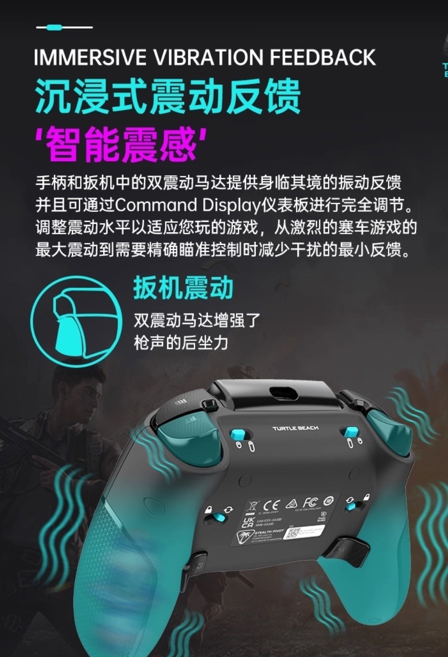 其他方面,該手柄支持三模連接,擁有沉浸式振動反饋,配備霍爾扳機,支持雙模行程切換,同時提供 3.5mm 耳機孔,可在插入耳機後配置 EQ 音效。手柄內置電池可供 20 小時續航。