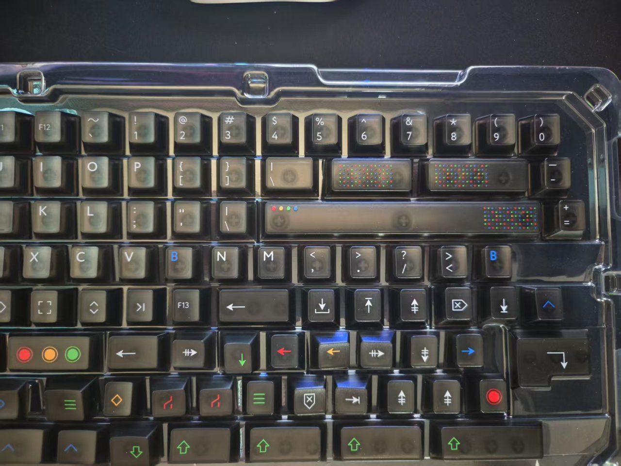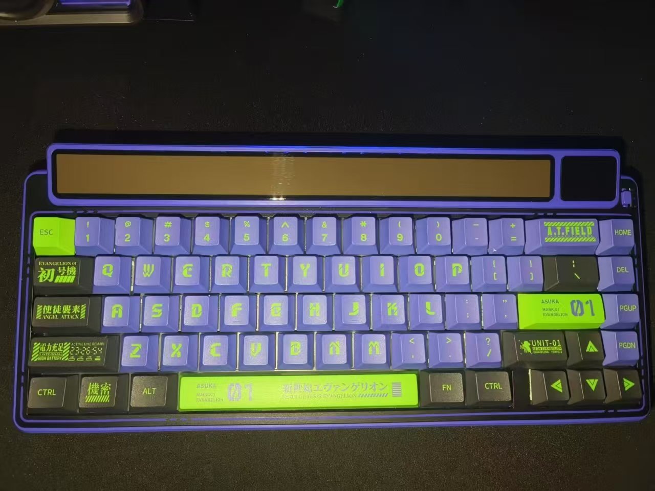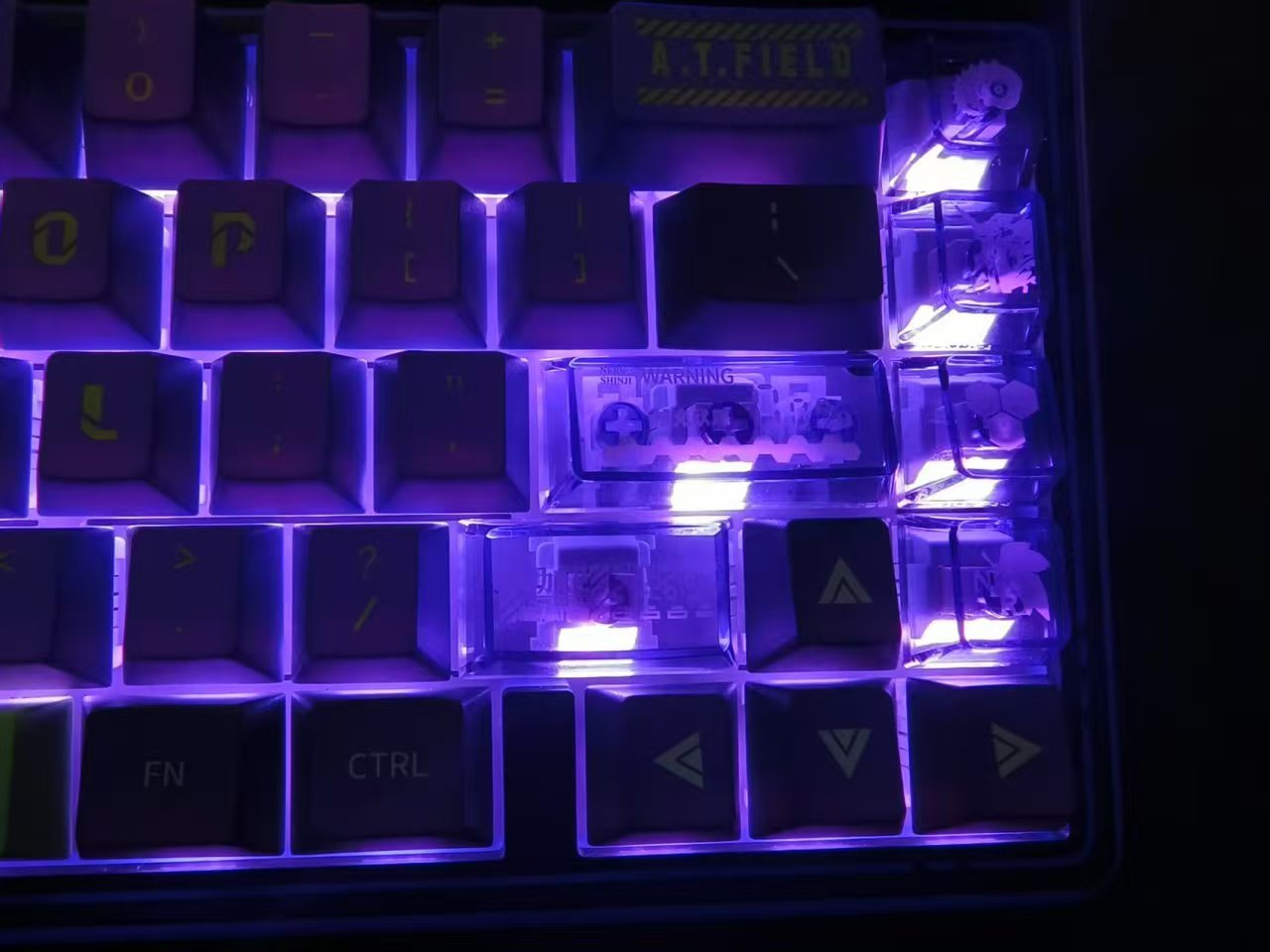 还有一种方案就是使用正面能够透光的侧刻键帽,比如等高线键帽亦或者正面带图案的侧刻键帽,诸如龙乘的侧刻明日香键帽就是这种风格。