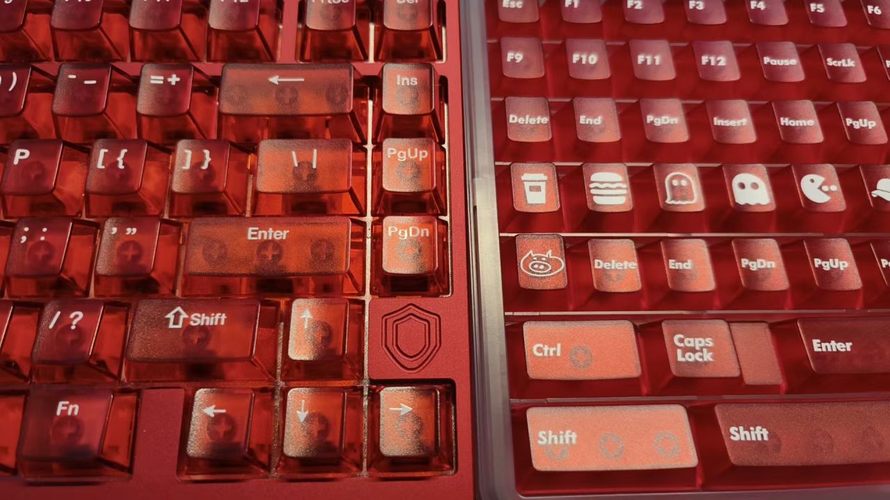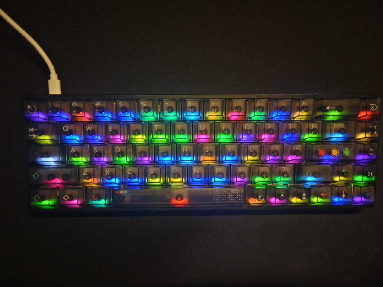 最直接的方案就是点缀上几颗PC全透键帽,这样不仅能让灯光从键盘上显露出来,还能一定程度的增加了键盘的颜值。