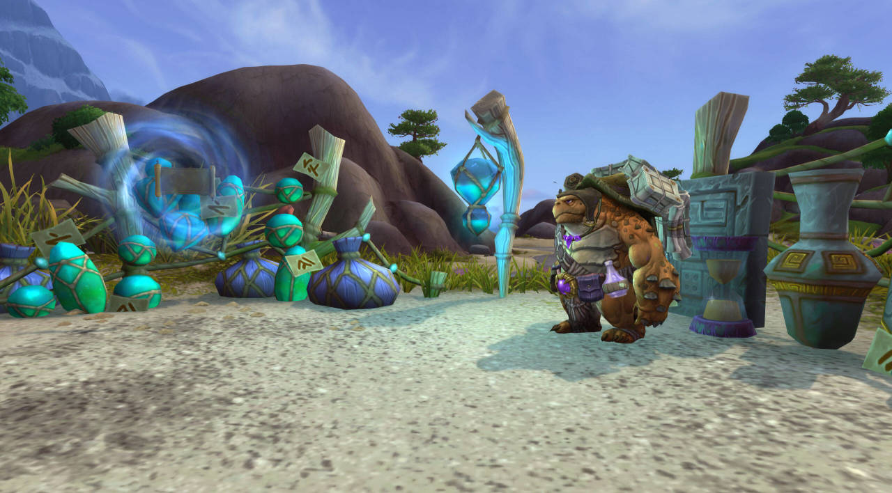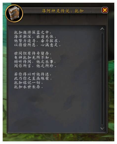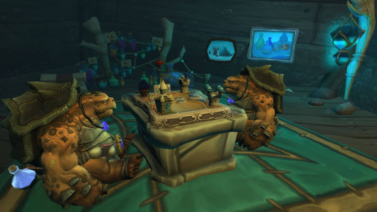 讀萬卷書,行萬里路,除去卷軸和故事,始祖龜也會親自踏上追尋故事的旅途。 在贊達拉,始祖龜對一位名叫“託加”的烏龜洛阿神崇敬有加。