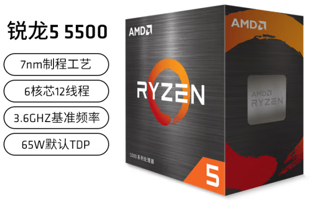 R5 5500 6核心12線程(約385元,建議搭配A520/B550主板):