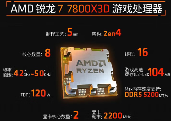 R7 7800X3D 8核心16線程(約2185元,建議搭配B650主板):