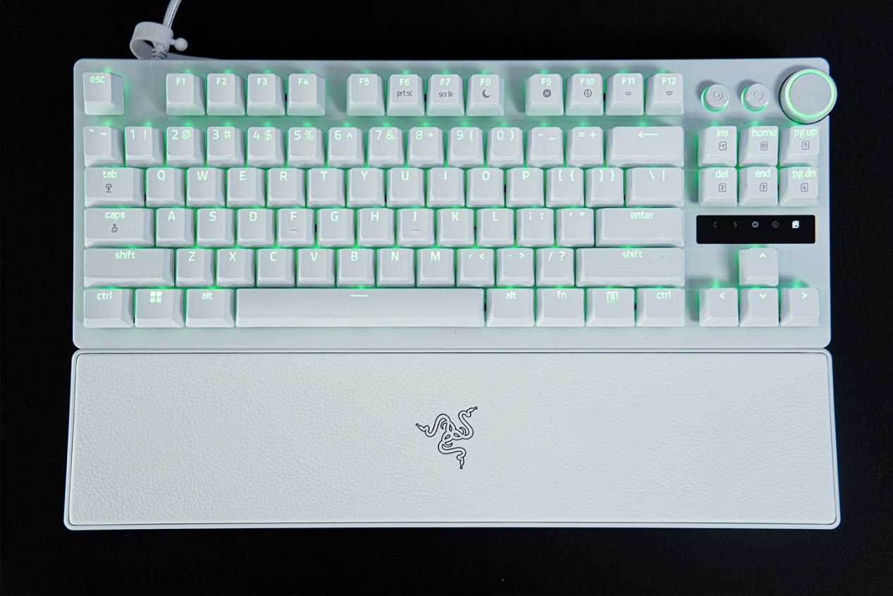 雷蛇猎魂光蛛V3专业竞技版悬浮式结构各个键位手感、敲击音可以保持高度一致,这方面肯定是完胜热门的“gasket”结构的,雷蛇猎魂光蛛V3专业竞技版使用拉丝铝合金顶板,外壳坚固的同时,质感相当不错。