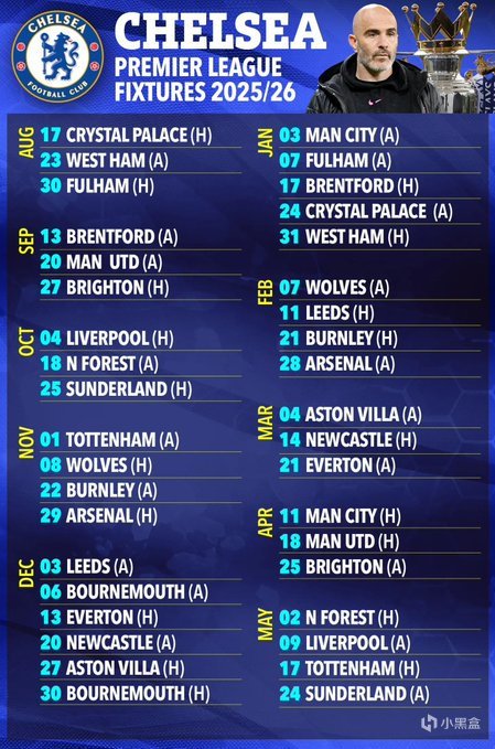 切尔西 新赛季赛程如下