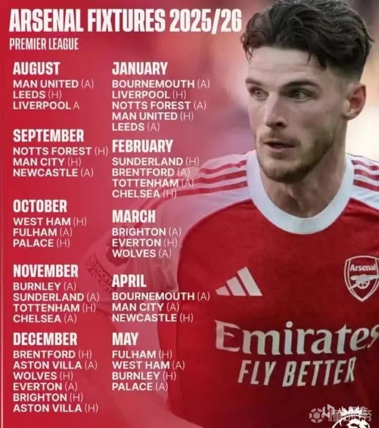 阿森纳 新赛季赛程如下