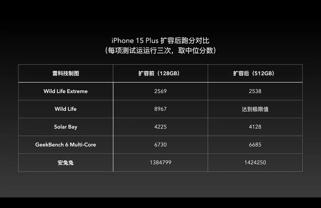 儘管iPhone擴容擴的是 ROM 不是 RAM,但小雷對比手機擴容前後的跑分數據,發現在部分測試中擴容還真帶來了分數提升。