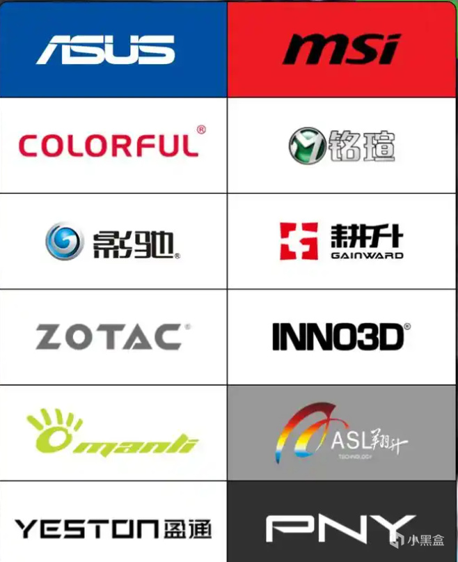N卡品牌(互联网收集,实际选择时可参考最新各品牌数据)