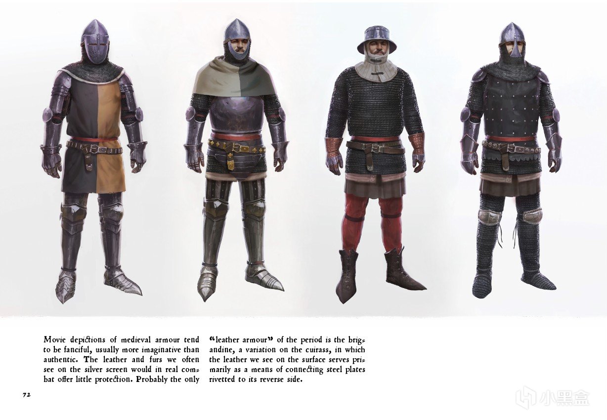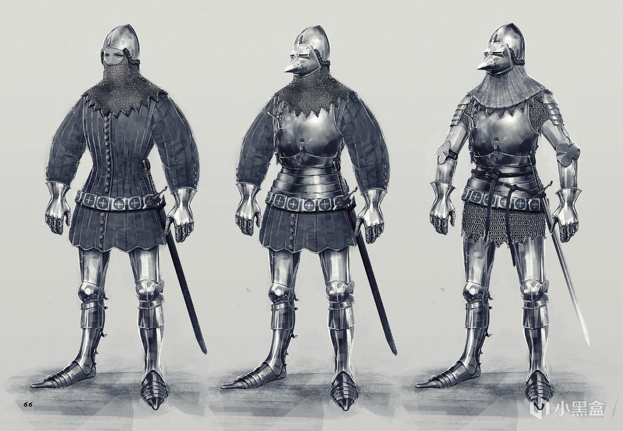 盔甲通常由几层组成:内层是绗缝层,用以减轻冲击,外面是链甲,再外层是板甲,通常最外面还有一件外套,或是第二件衣物,甚至盔甲也会受到时尚的影响,特别是在华丽装饰的腰带和与稀有织物和皮革交织的胸甲上,可以看到这一点。