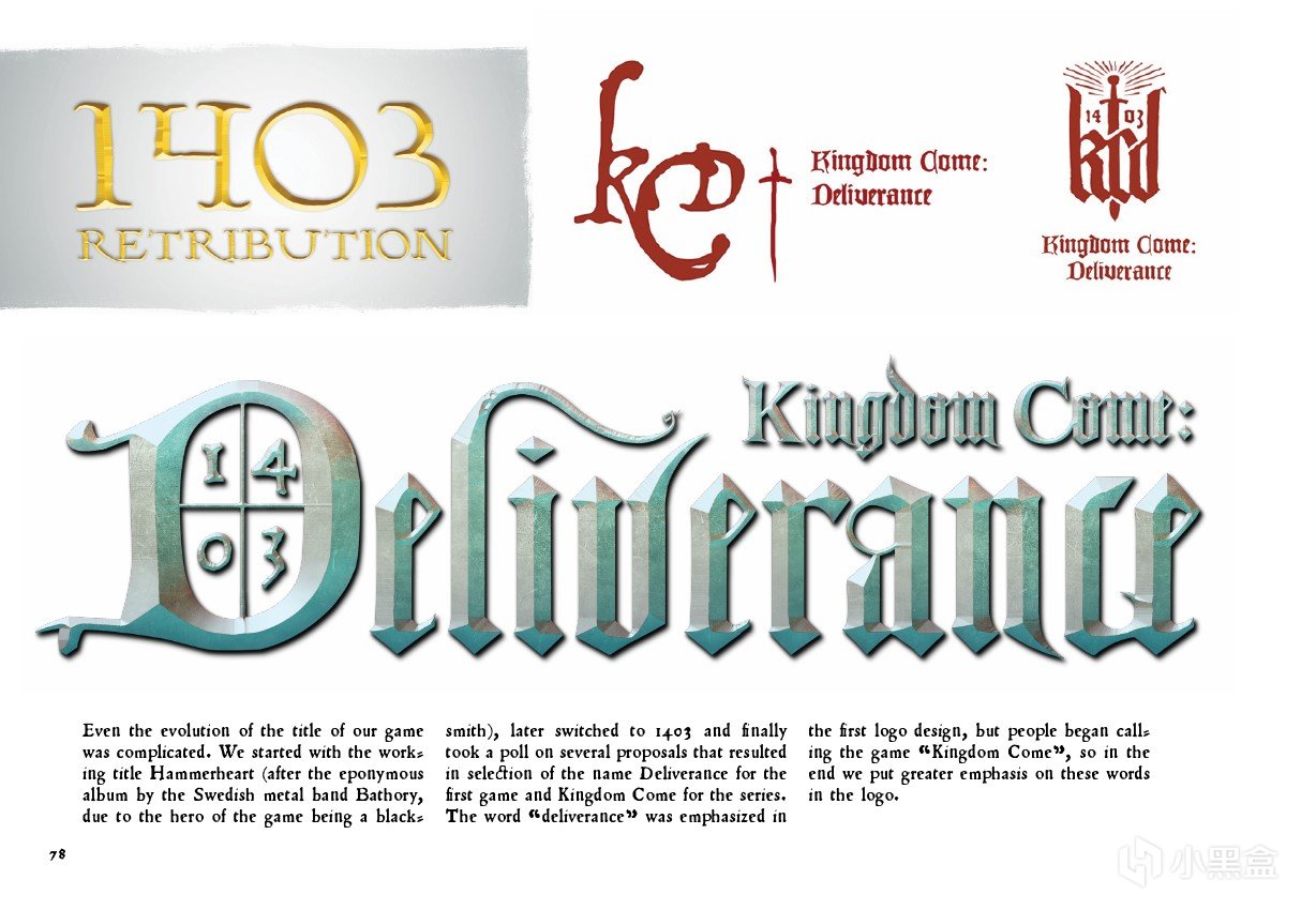 甚至我们游戏标题的演变也很复杂。我们的标题从“锤心”开始,这个名称源自瑞典金属乐队巴瑟瑞的同名专辑,因为游戏的英雄是一个铁匠,后来改为“1403”,最后对几个提议进行了投票,最终选定了第一个游戏的名称“解脱”和这个系列的名称“kingdom come”。在第一个logo设计中,单词“解脱”被强调,但人们开始称这个游戏为“kingdom come”,所以最后我们在logo中更加强调了这个词。