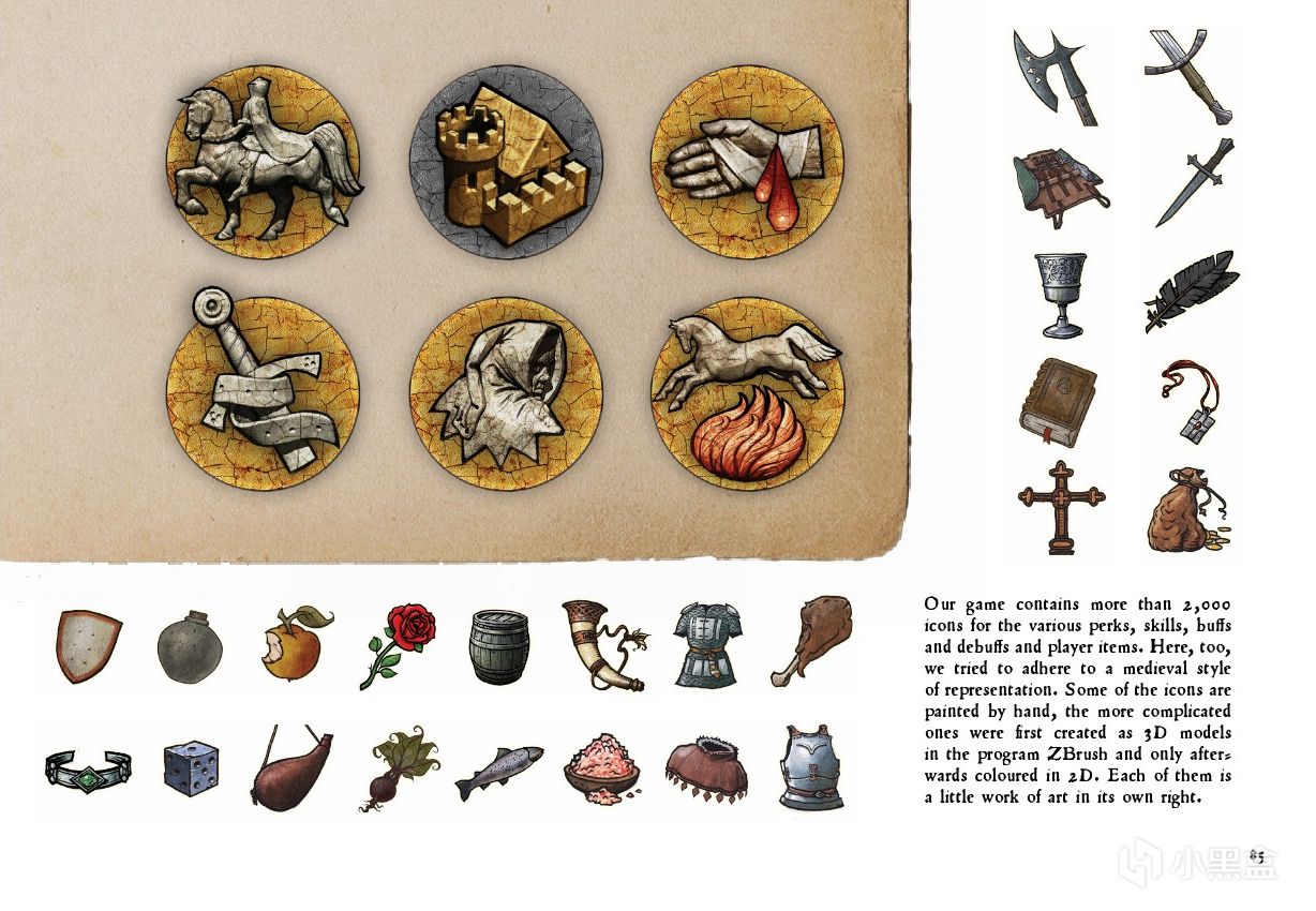 包含超过2000个图标,用于各种特权、技能、增益和减益以及玩家物品。在这里,我们也试图遵循中世纪风格的表现,有些图标是手工绘制的,而更复杂的图标则首先在ZBrush程序中创建为3D模型,然后再用3D上色。每一个图标本身都是一件小艺术品