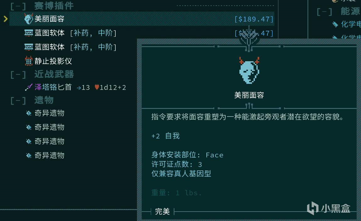 带神经元电荷的组织鞘传递意志的速度,比细胞生物学所达到的要快,所以你手枪开火速度+25%。它们也会提供你夜视能力、帮助分析物品或敌人数据、跳得快高跑得更快——或者换一幅甭管是战斗修女、还是福瑞熊人,看了就会原地发情的魅魔脸皮。