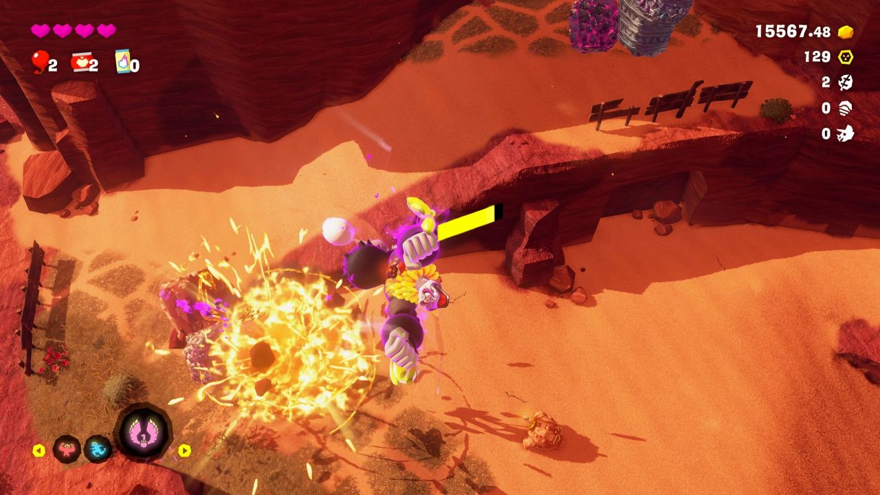 作爲咚奇剛,你將能夠利用強大的能力粉碎障礙物和敵人,甚至發掘隱藏物品。使用"俯衝拳"深入地下,翻滾越過障礙物,使用"手拍"幫助找到隱藏物品。你還可以撕下地面碎片投擲敵人或站在上面"草皮衝浪"。這些能力可以組合使用製造最大混亂。