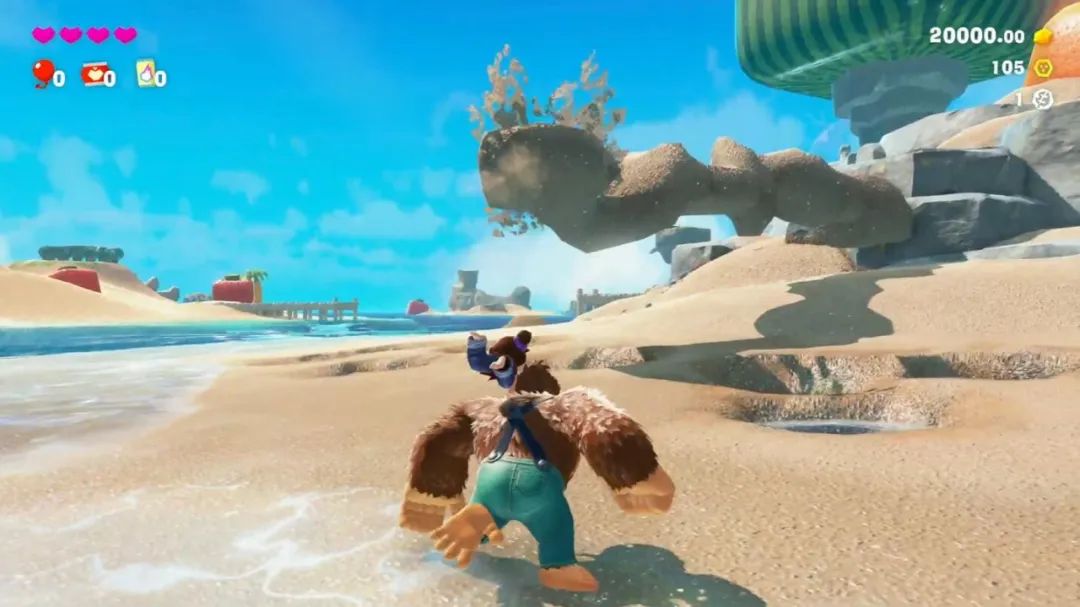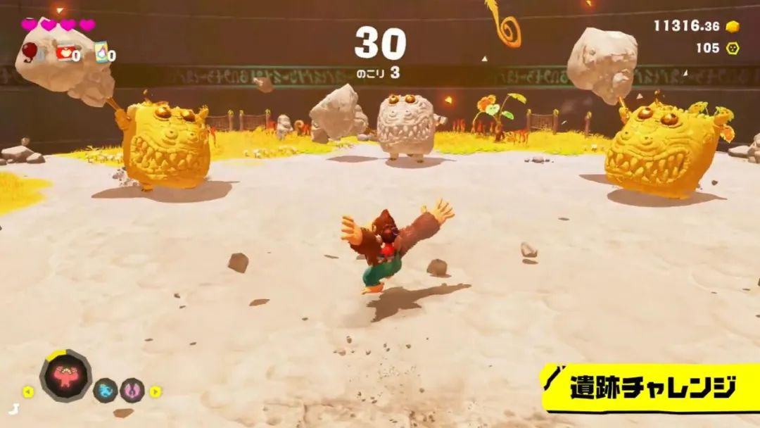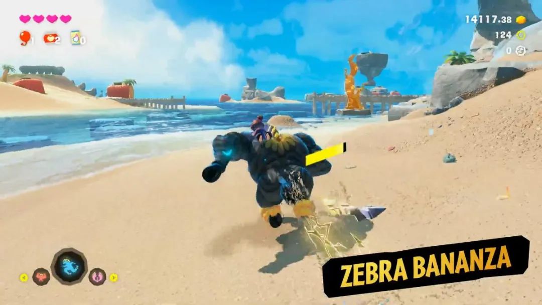 游戏中有多种收集要素,其中宝石香蕉可以用于升级属性、学习技能,金块可以购买补给道具,化石可以兑换服装。