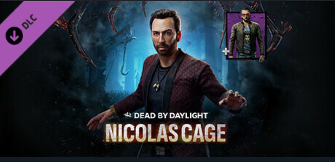 準備一場巡迴演出。新章節《黎明殺機:尼古拉斯·凱奇》帶來一名新逃生者,傳奇演員尼古拉斯·凱奇,這是他迄今爲止扮演的最具殺傷力的角色。購買DLC可解鎖專屬外觀物品:藍綠夾克和尼古拉斯·凱奇的非常稀有級戈爾貢水滴套裝。