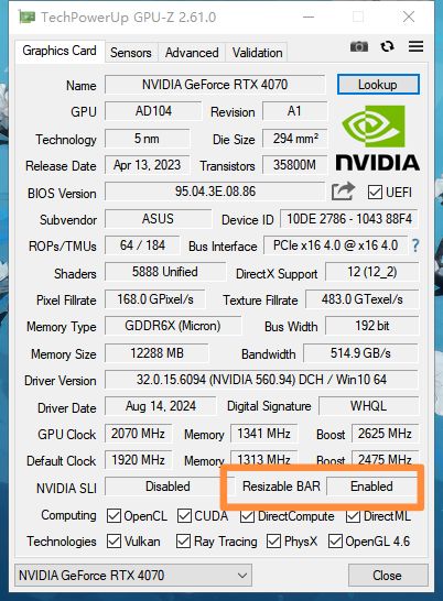 8.開啓resizebar和above4G (已經開啓的不用管,不知道是不是開啓的可以去gpuz裏看。開了之後啓動項改成UFEI不能用csm,否則進不了系統)