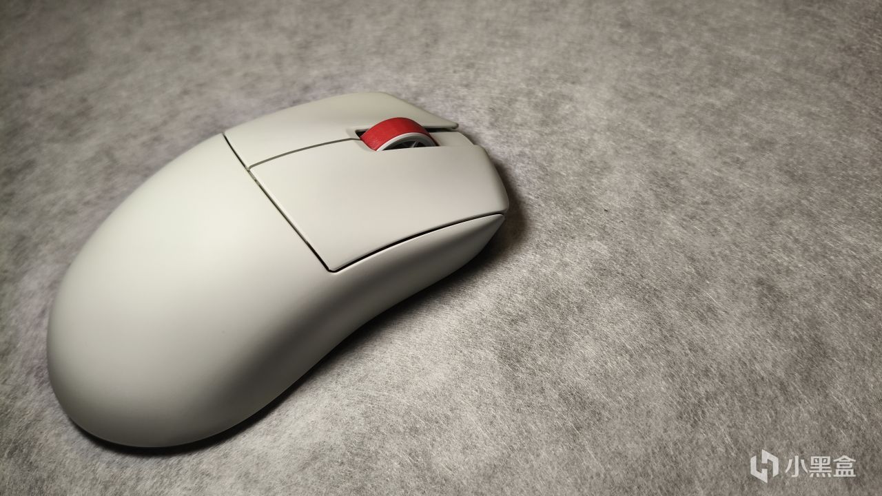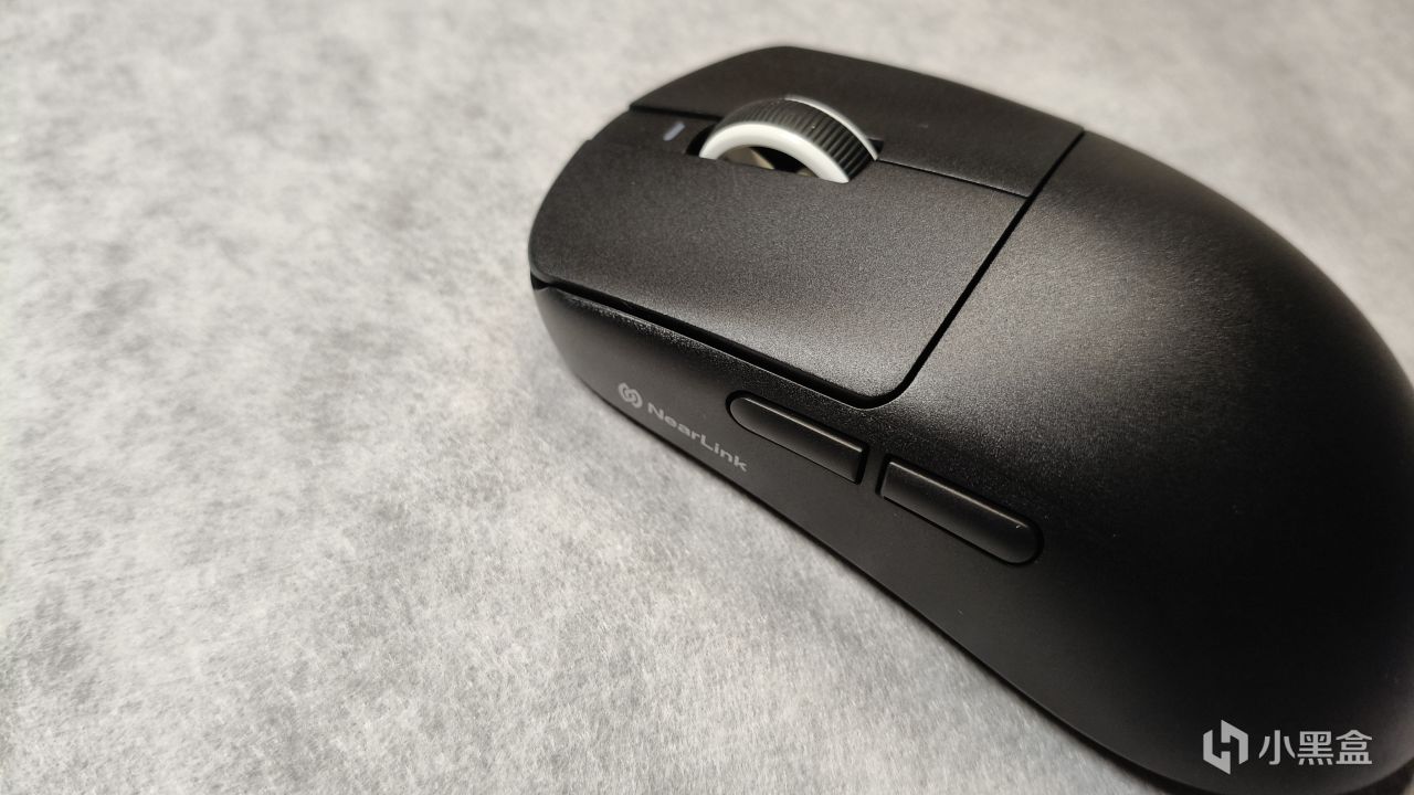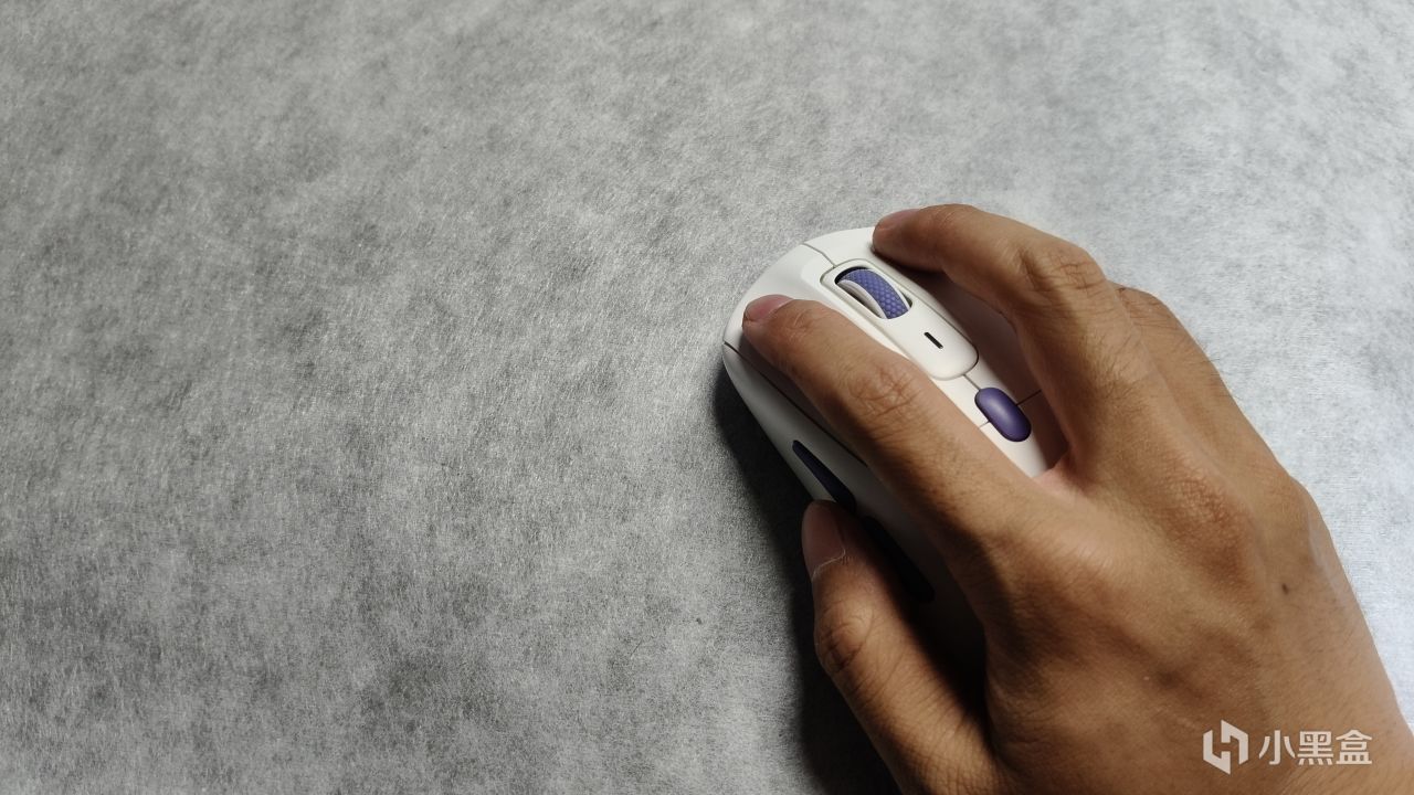 腰部方面并没有太收,表面有亲肤涂层,握起来冰冰凉凉,重要是重量非常轻啊,带电池的情况下也就57g,去掉电池48g,fps玩家直接狠狠拉枪就完事了,不过如果想上无线8k的话得加点钱上max版本。