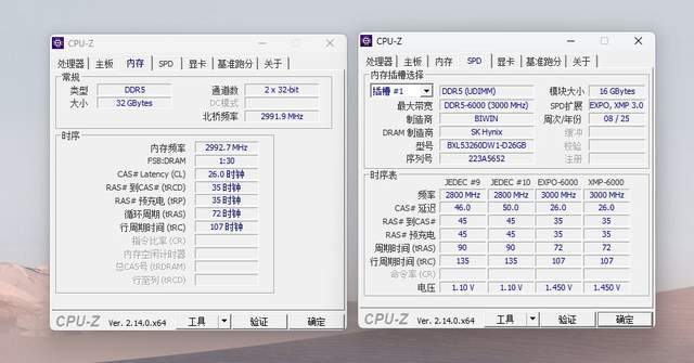 CPU-Z,我们看到内存现在运行在6000MHz的频率,时序是26-35-35-72,正如之前EXPO参数的一样。