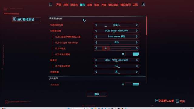 看看实际游戏里的表现,赛博朋克2077,启用DLSS4.0,4X帧生成,开启超级光线追踪,2K分辨率。