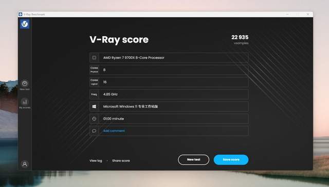 CINBENCH R23测试,多核22944,单核2251,比起之前默频的时候提升了成绩。