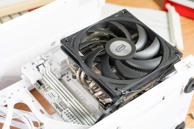 CPU散热器不像普通电脑那样随意选择,既要考虑到散热能力,还要考虑到机箱容纳的高度,以及主板周边的配置,不能同周边部件冲突。这我选的是超频三的降龙RC600-67 下压式散热器。