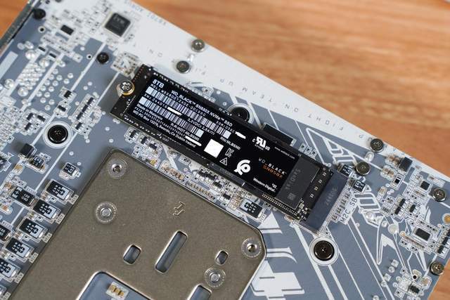M.2装甲是易拆设计,可轻松取下,可看见内部均有散热垫。M.2硬盘也是易拆设计。