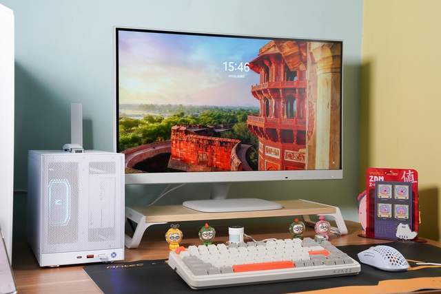 接好线,启动电脑,机箱内显卡的侧面RGB彩灯亮了,然后顺利进入了系统,我们来看看这款小电脑的表现如何。