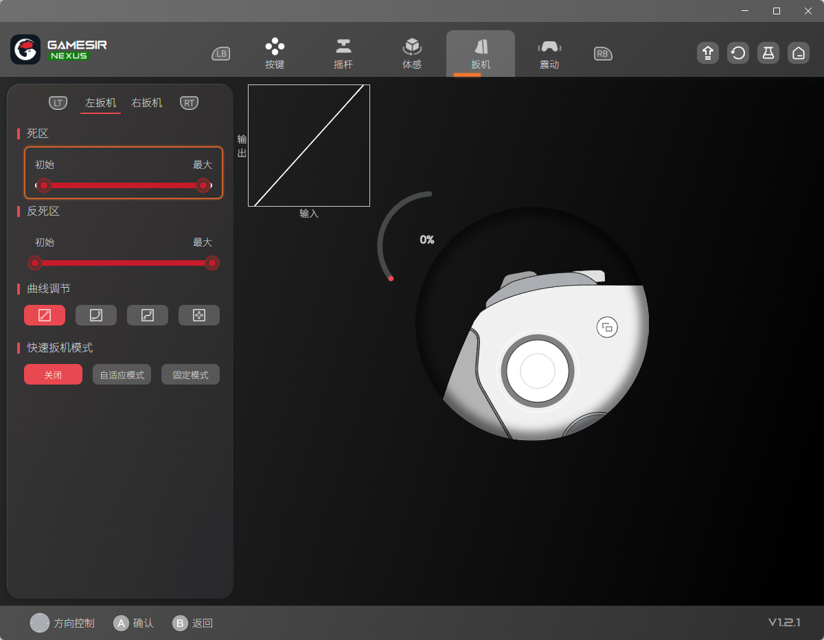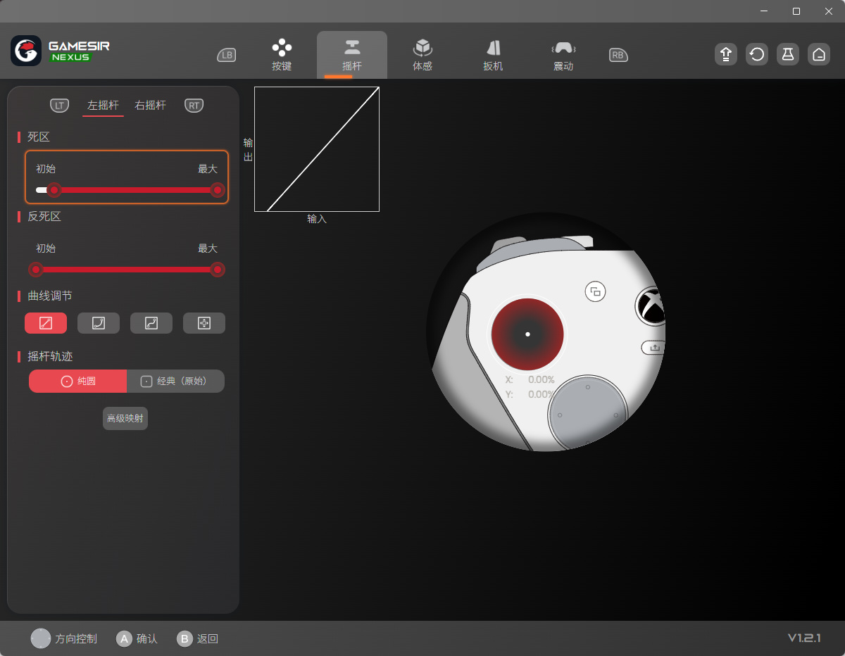 手柄默认有10%的死区,可在盖世小鸡的官方驱动GameSir Nexus 2.0中自定义死区大小,亦可设置为零死区。手柄外圈可在圆形及八边形中切换,能够满足不同类型玩家的使用需求。