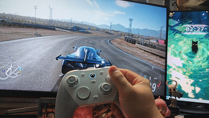 手柄自带扳机震动与握把震动,震动方面做得非常不错,启停都很快速,振动反馈及时,强烈,氛围感很不错。这也是Xbox授权手柄的一大优势,能够体验原生震动带来的极强沉浸感。不过需要注意,在开启1000Hz轮询率之后会关闭原生震动功能,所以除非FPS用户,不然我是不推荐大家去开启1000Hz轮询率的。日常250Hz是绝对够用的,还能有效延长手柄续航。