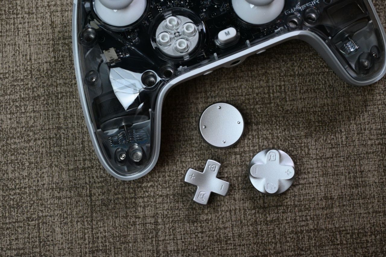 手柄十字键为机械微动开关,键帽为可替换设计,原装配备有圆形、十字及圆盘十字三款键帽,可以根据不同游戏选择自己最喜欢的键帽类型。机械微动的优势在于极强的使用寿命,清脆的按键反馈及极快的响应能力。实际使用中,按键盘动非常顺滑,不粘连,不串键,个人使用下来是非常舒服的,他的斜向触发非常准确,很适合玩吃格斗游戏及平台跳跃游戏。