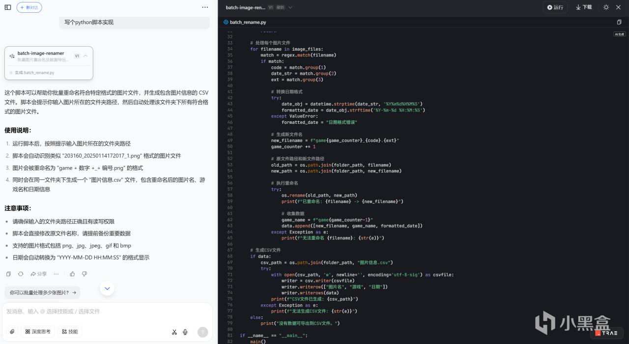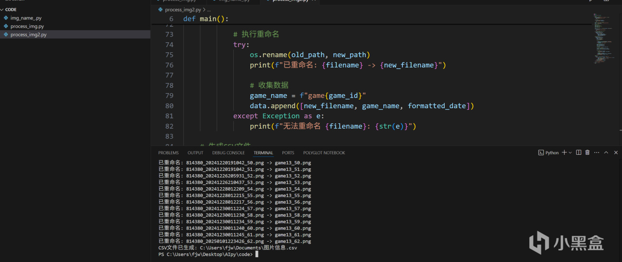 现在我的需求是 文件命名成 game+数字+_+编号.png(例如game1_1.png),其他信息我想导出成 csv 文件,放到 excel 里面,就可以做一些统计之类的操作。