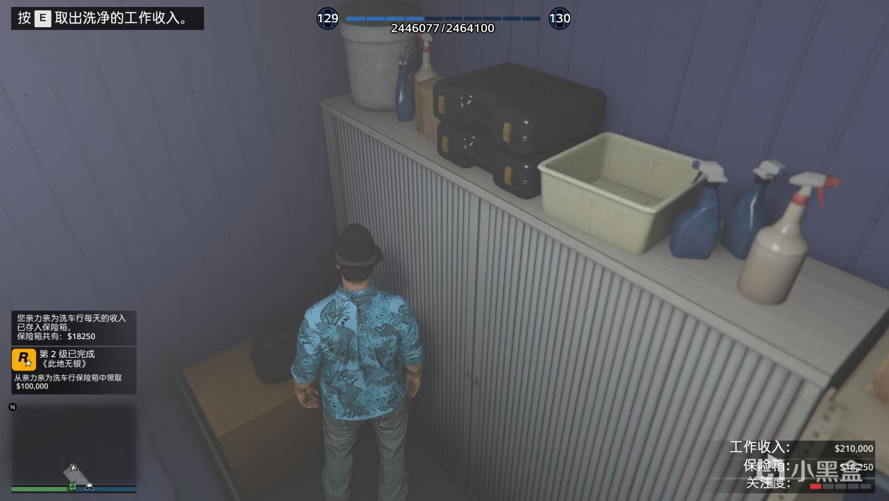 洗车行的保险箱靠近按“Q”可以看其他拥有资产的每日收入数据,类似于游戏厅的终端系统,然后其他资产赚的钱会存放在这里,这个保险箱限额10万,记得定期来取