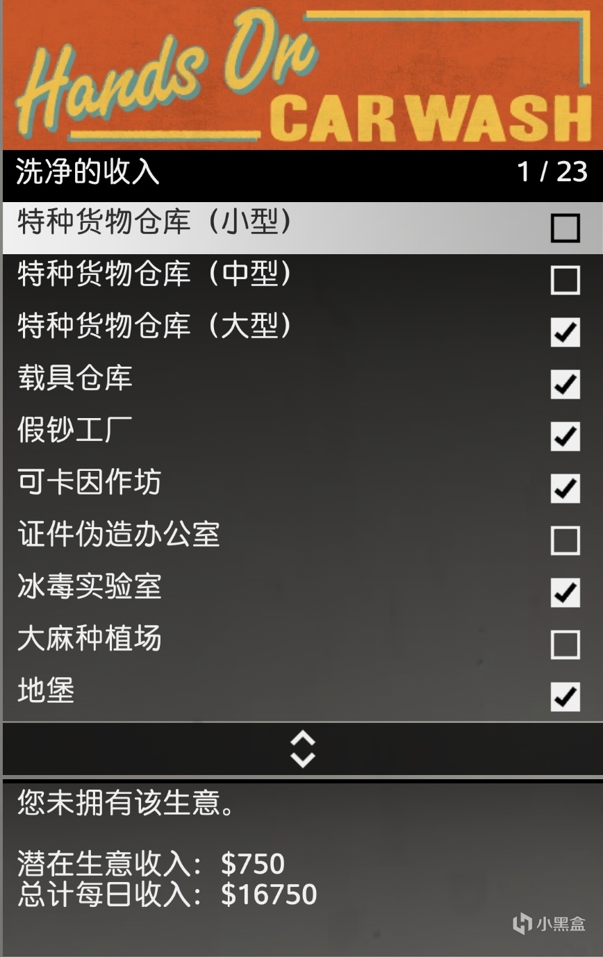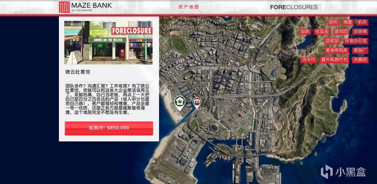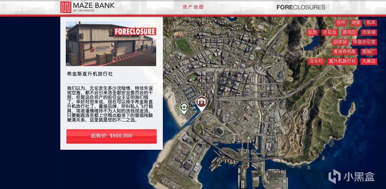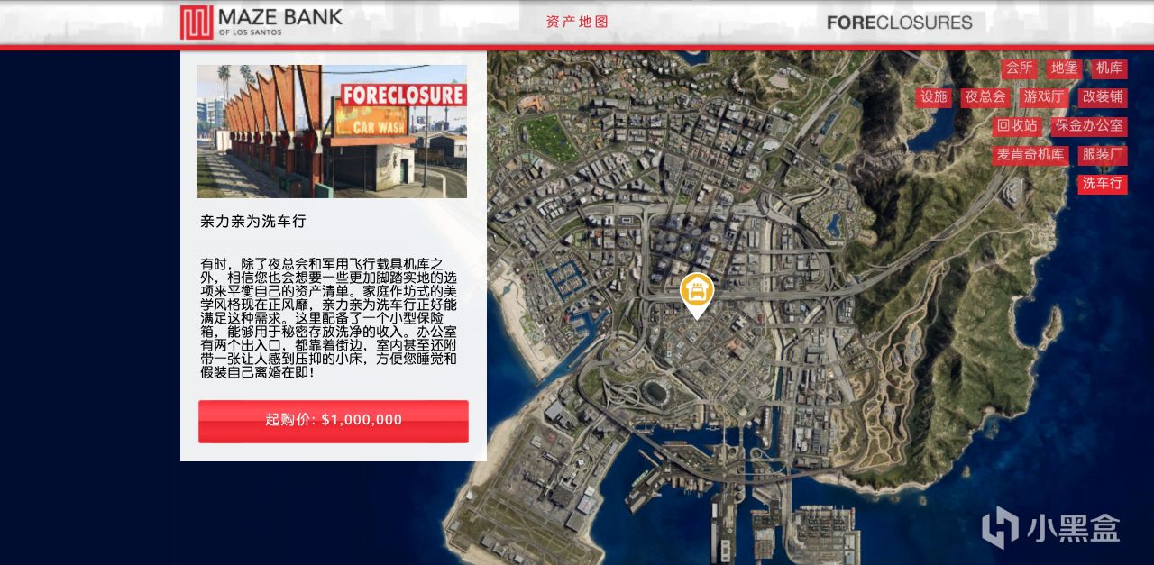 3.注意现在只是解锁了亲力亲为洗车行的购买,另外希金斯直升机旅行社和喷云吐雾馆需在购买洗车行后进入洗车行再次触发一段动画后才可购买,这两个新资产购买方式有三种,可在洗车行电脑按“Q”扩展资产登录资产交易网站购买,手机的资产交易网站或者新资产门口的牌子购买