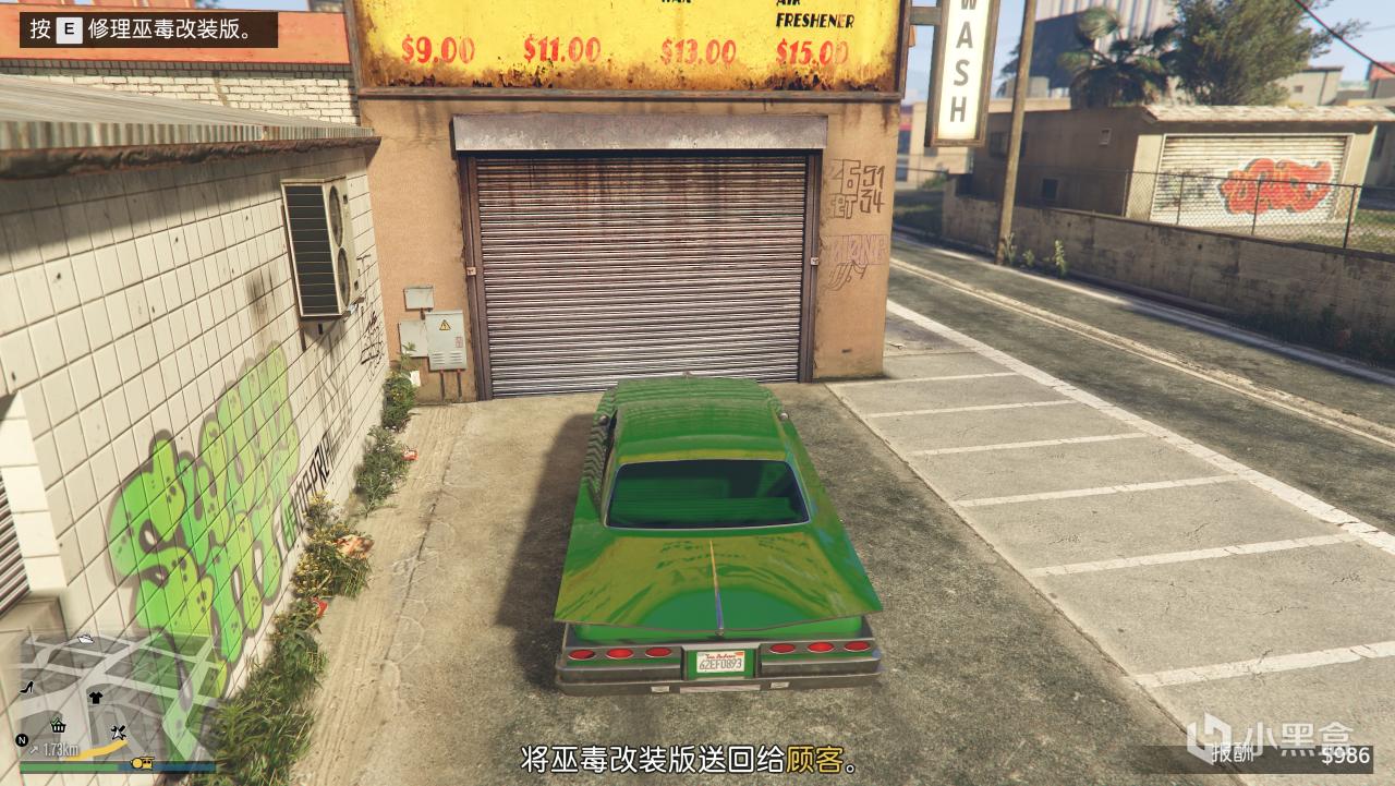 到达地点后在绿箭头密码箱按“E”取走钥匙(有时绿箭头未必就在眼前但环顾下四周一般都能找到,地图上也会有绿色标记)把车开回洗车行(开车也要先按“E”解锁车辆)