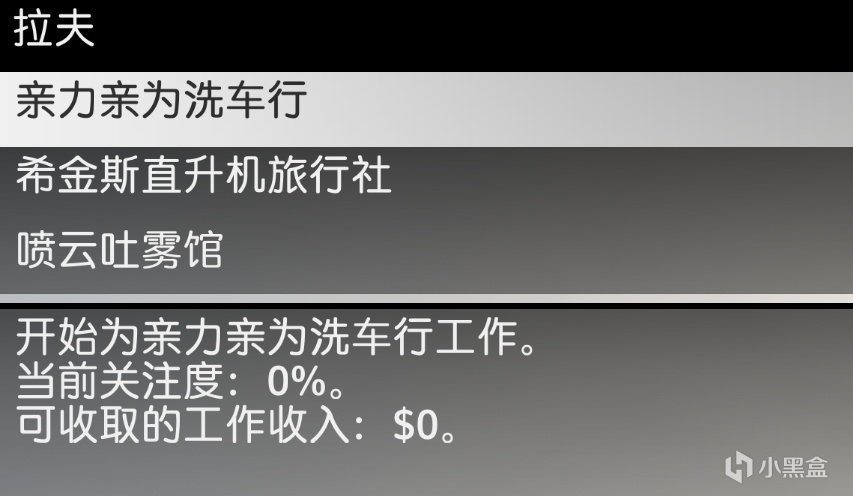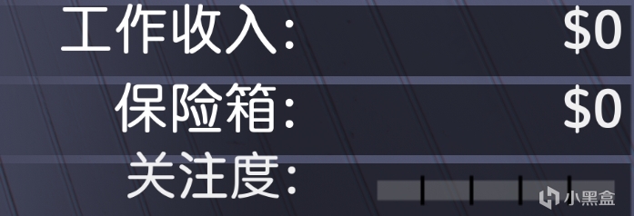 在这建议大家在做“洗钱”系列非法任务或者主线系列任务“费伯先生的差事”时大家记得多留意关注度进度条哦,关注度差不多满了就该做做合法任务减一下了,只需做一次合法任务即可将该资产的关注度进度条清零