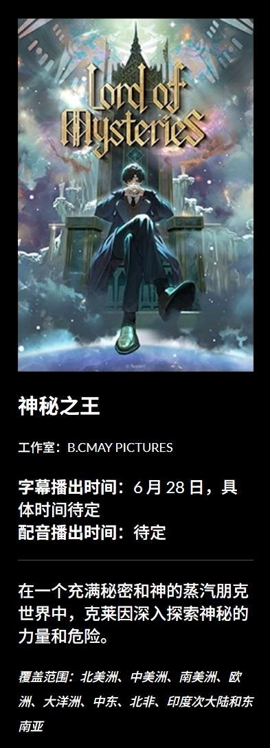 而Crunchyroll是海外最大的動漫平臺,在動漫領域的熱度和受衆不亞於網飛,可以理解爲國內的騰訊視頻+愛奇藝,《詭祕之主》登陸該平臺的確是國內國外兩開花(六老師音)。