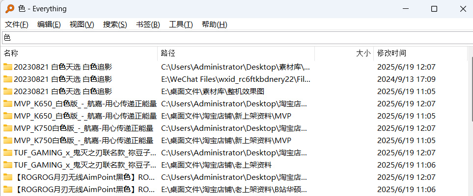 電腦用久了,一堆文件你可能記不得放哪兒了,那everything就可以派上用場,打開後搜索關鍵字,就可以搜出所有相關文件