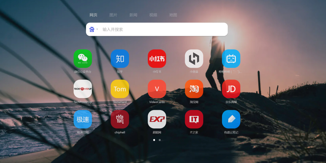比如我裝了一個Infinity新標籤頁的擴展,可以自定義瀏覽器界面,打開後如下: