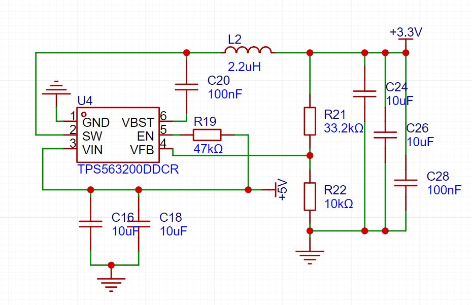 输入type-c的5V,DCDC用的是TPS563200,根据技术手册,这个芯片实际上也能转1.2V,后续HDMI芯片也可以用。