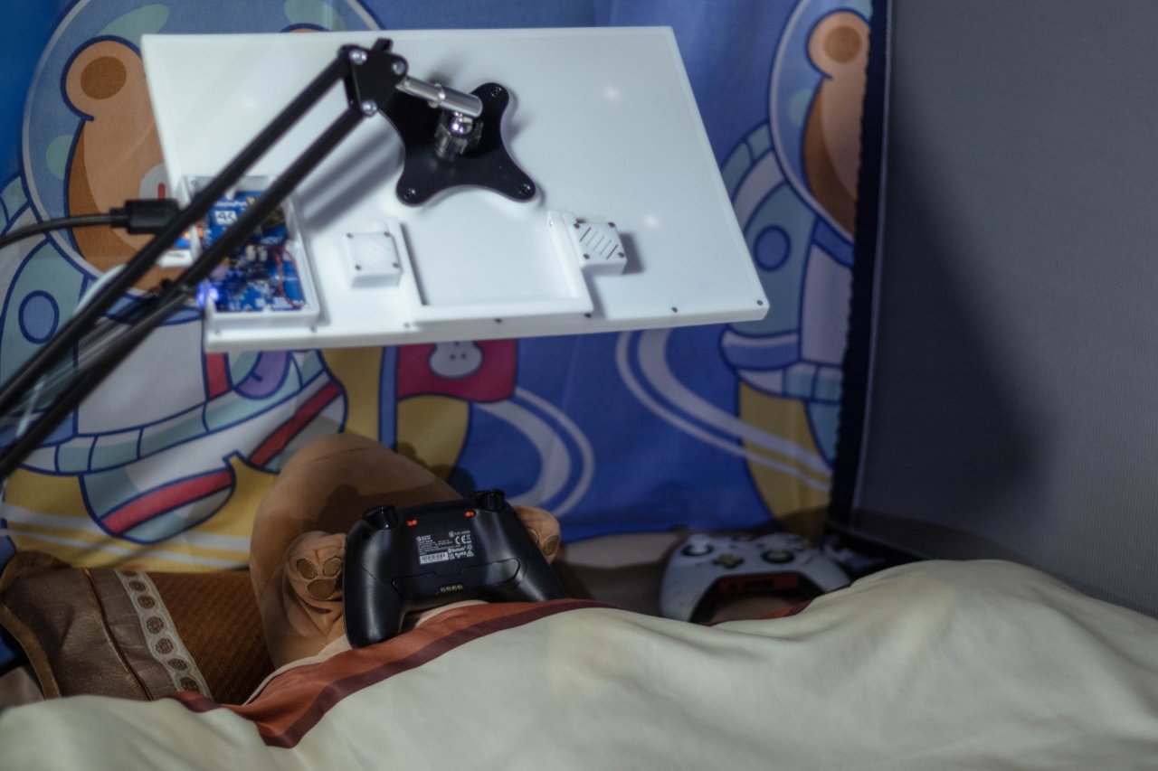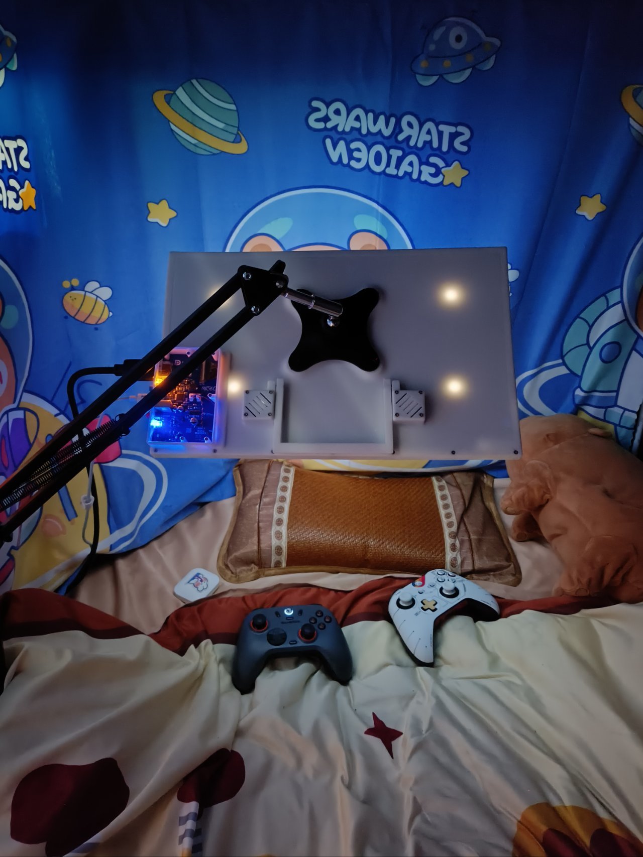 事情缘由。我想躺着玩游戏(最高端的食材往往只需要...)。本来看了一阵子的steam deck,由于steam deck一直不降价,我的电脑桌又在床边,于是恶向胆边生,决定自己搓一个显示器。