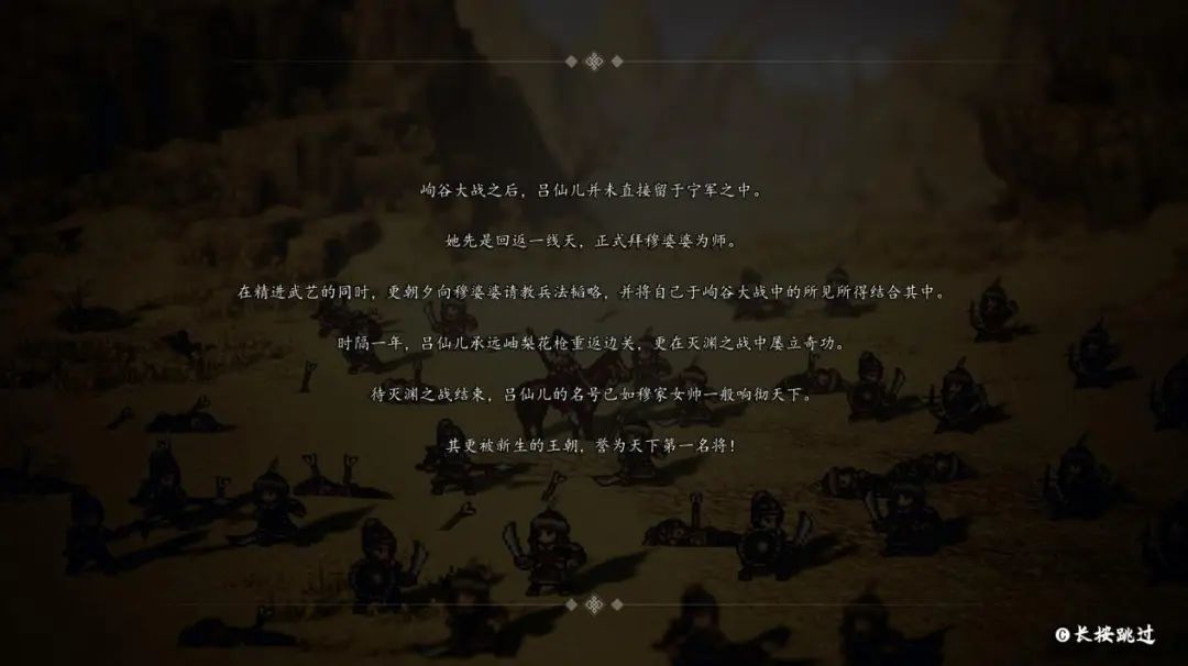 私以爲此BE,爲《大俠立志傳》的文案巔峯之一。一陣又一陣絕望的文字後,四個紅色大字隨着宏大而略顯詭異的BGM浮現,令我在大半夜頭皮發麻,拍掌驚呼牛逼。