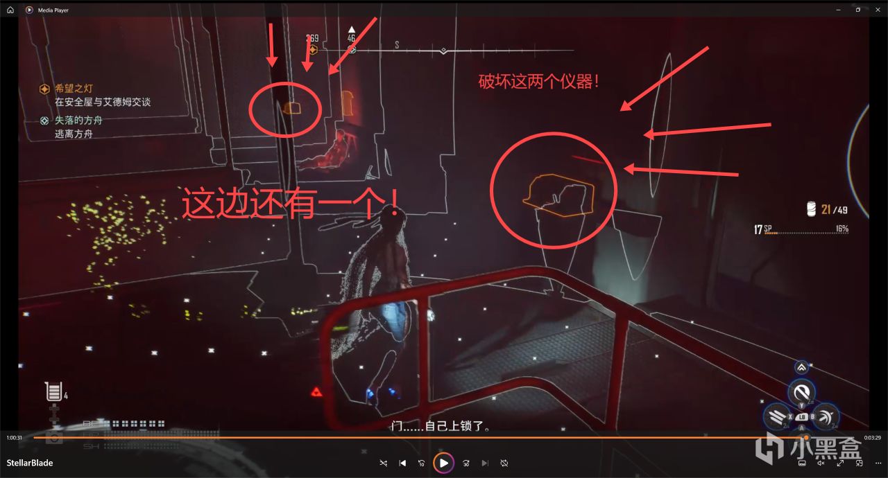 然後就把門鎖上了,接下來我就帶大家去如何開鎖出去這裏,我們首先開啓掃描,看到高亮的兩個機器都打掉!