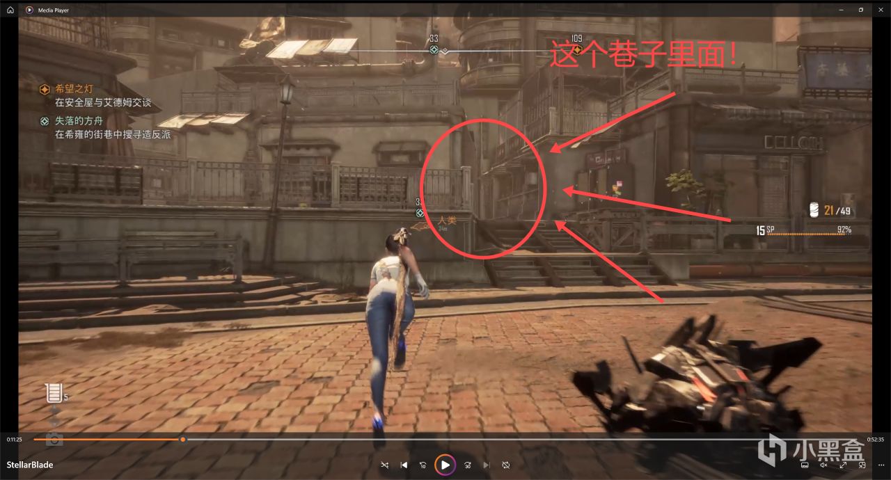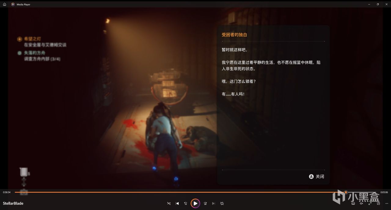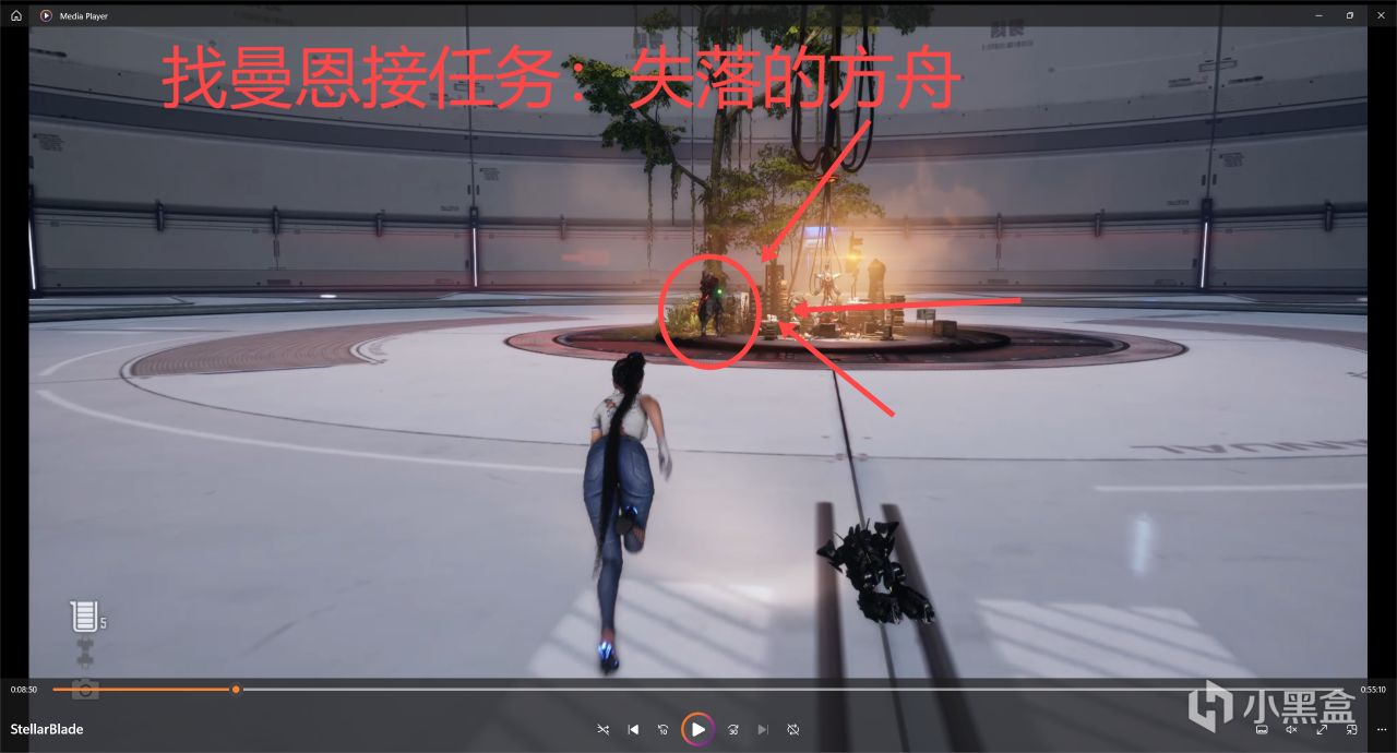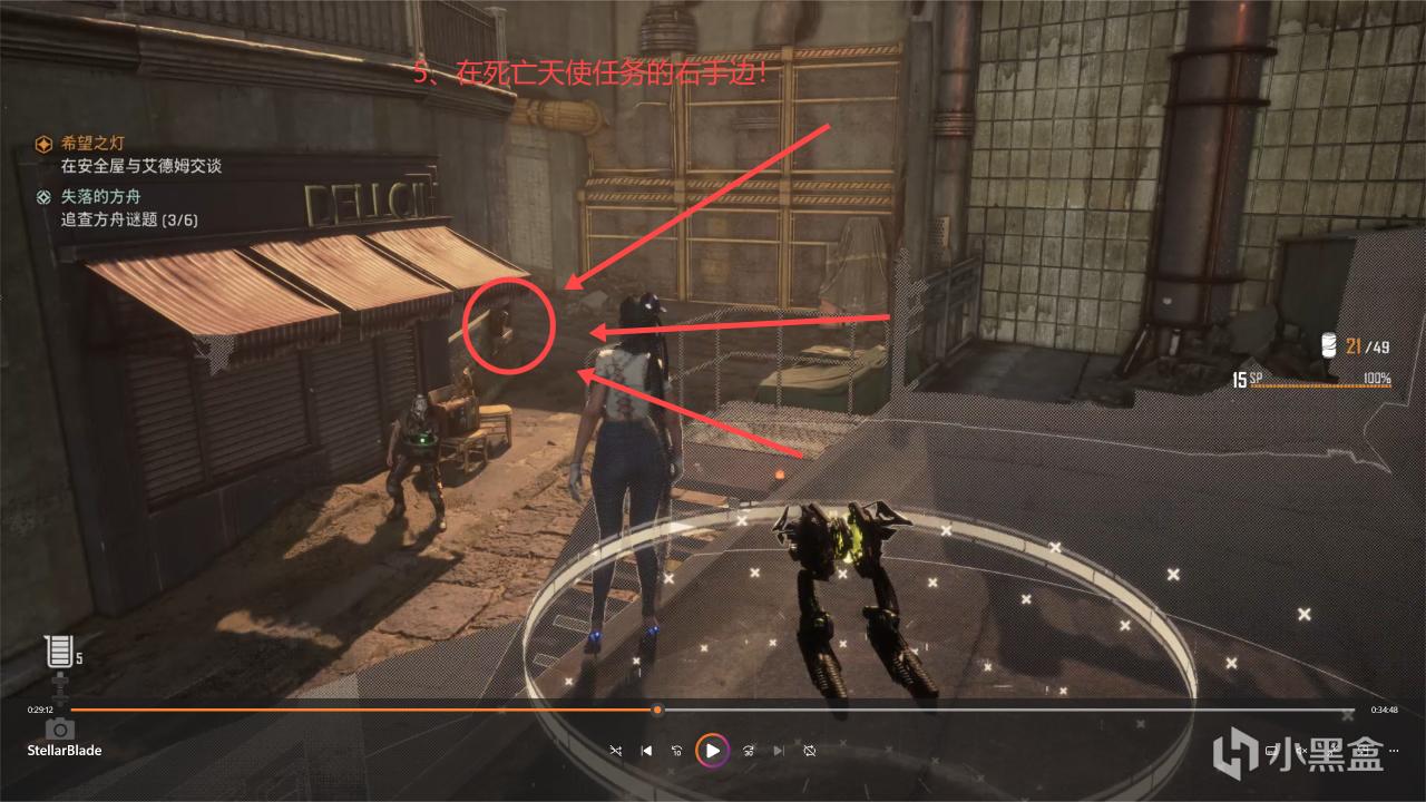 這個任務就很氣人,真的很氣人,點位在上面的接取任務的地方已經標出來了,有人騙你說他妹妹遇到了危險,我們過去就給偷襲了!然後看動畫就完事了,艾德姆來救伊芙,回到了四腳艙!