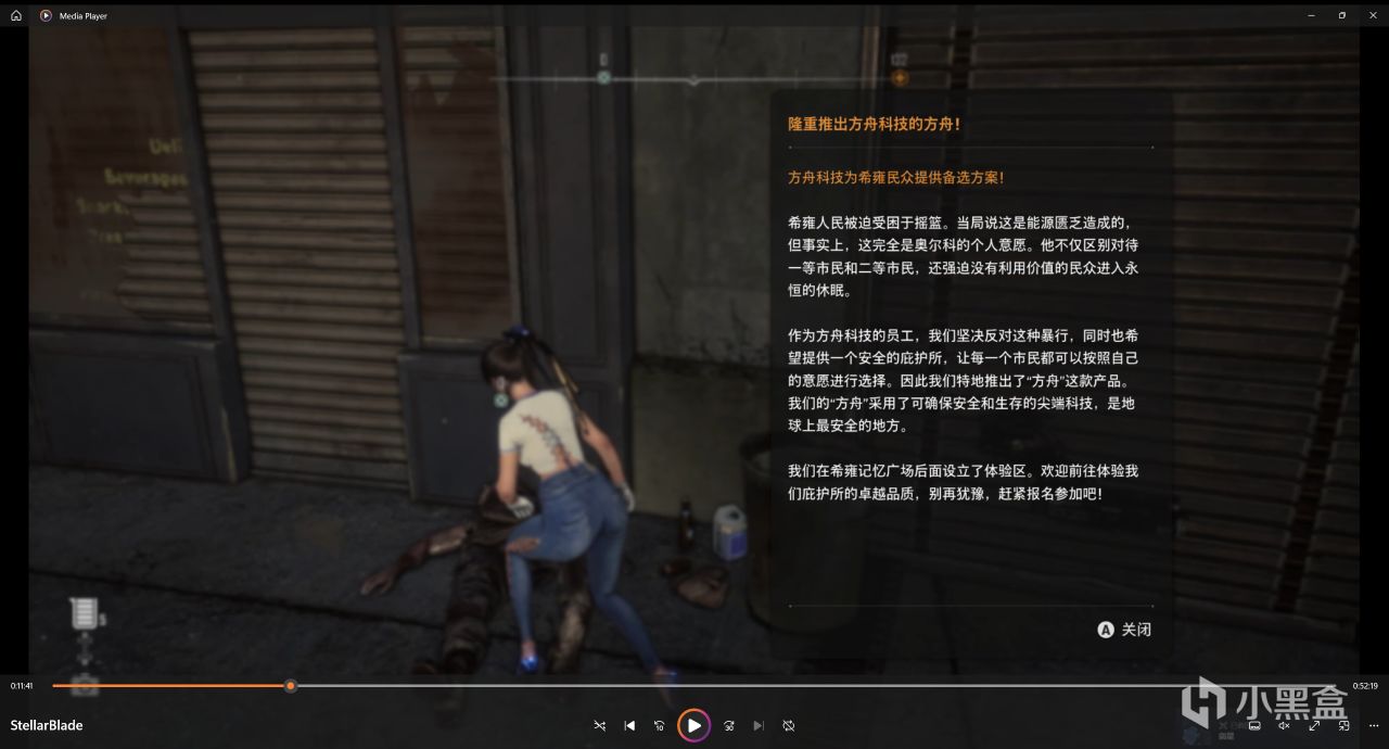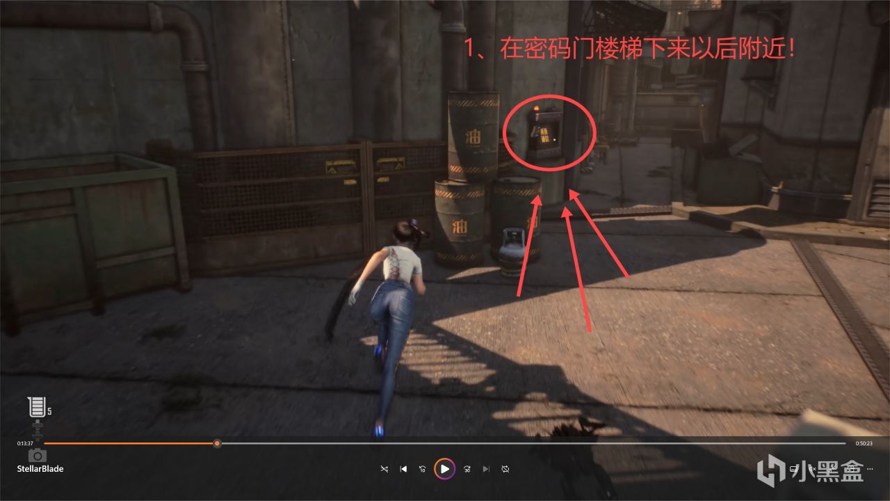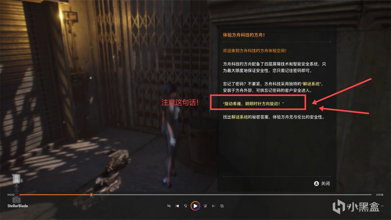 接下來我們再往巷子左邊進行深入,沿着樓梯上去,這裏雖然前面有個任務提示,但是你不能拿到,需要你先和密碼門進行交互,然後纔可以拿到任務提示:體驗方舟科技的方舟!