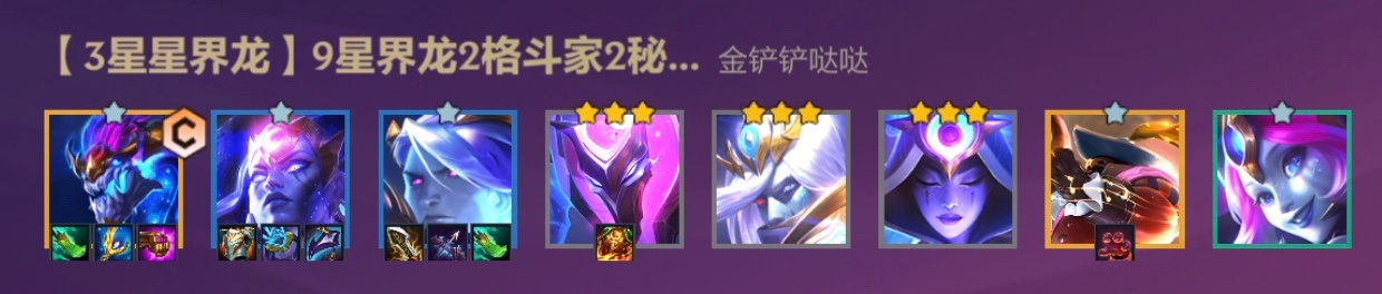 大家可以在更多阵型找一下金铲铲哒哒,按他的思路阵型玩。我也是第一次玩就D出了三星八费,也是爽到了