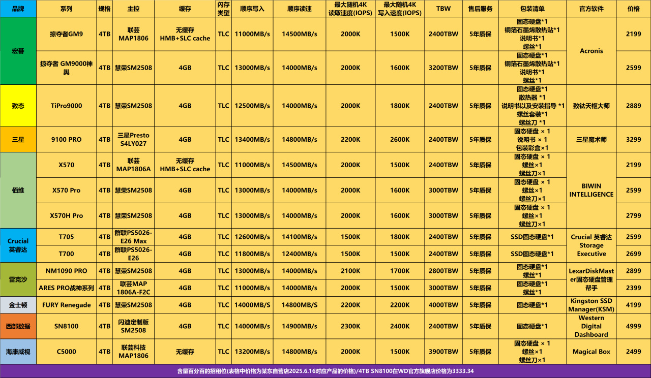 E26、联芸MAP1806和慧荣SM2508为主,包含西部数据定制版SM2508。