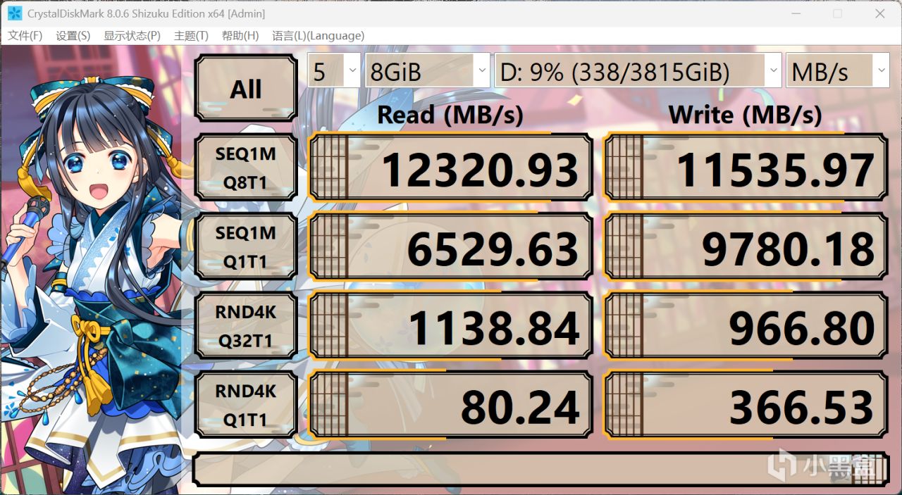 GM9系列采用无缓存设计,主控为联芸MAP1806,存储颗粒同样是BIWIN自封的TLC NAND产品。顺序读速高达14500MB/s,顺序写入速度为11000MB/s,最大写入量为2400TBW。最大随机4K读取速度(IOPS)为2000K,最大随机4K写入速度(IOPS)为1500K。
