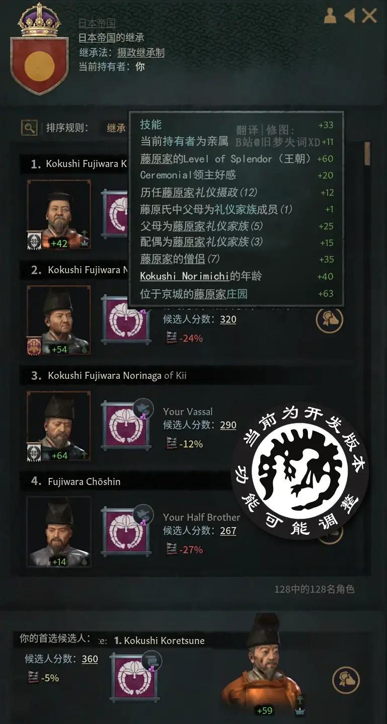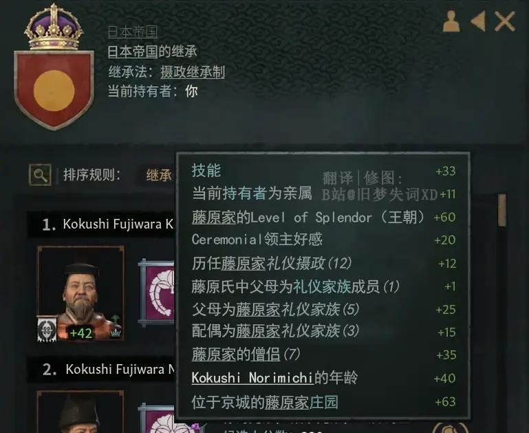 3.關白的繼承機制與拜占庭的歡呼繼承製相似,通過消耗影響力來增減,但同時也有一套與皇室和集團相關的權重系統。