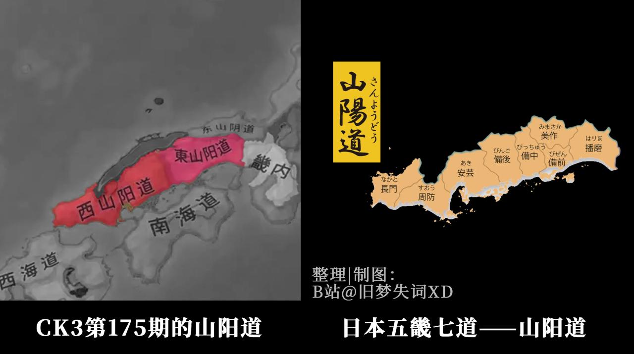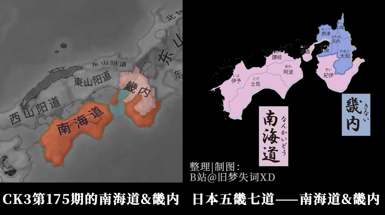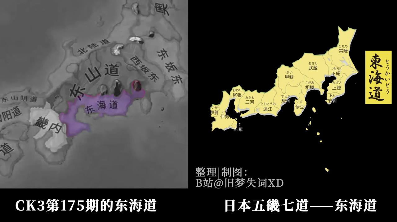 與歷史上的五畿七道相比,遊戲中的關西與關東的公爵法理規劃呈現兩個不同的特點。關西較爲尊重歷史上五畿七道的劃分,僅僅做出了東西,南北的細化。