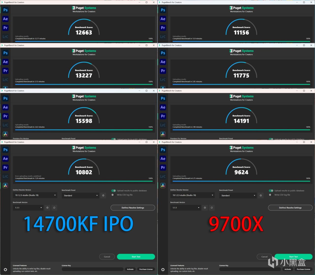 這方面其實不用測就知道,多核大內存都是與生產力正相關的參數,14700KF+8000MHz 48GB內存有很大的優勢。