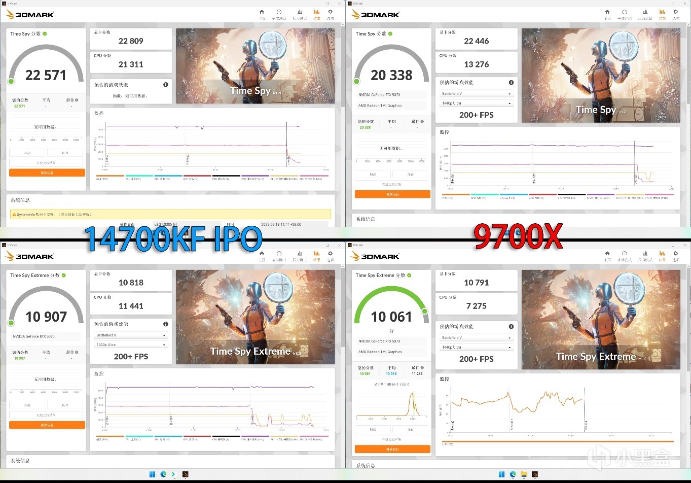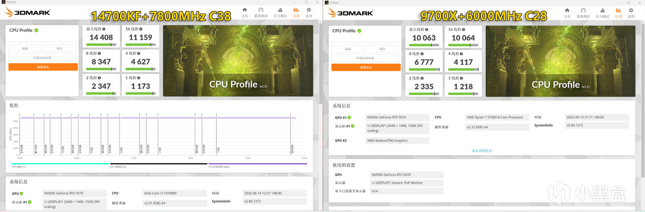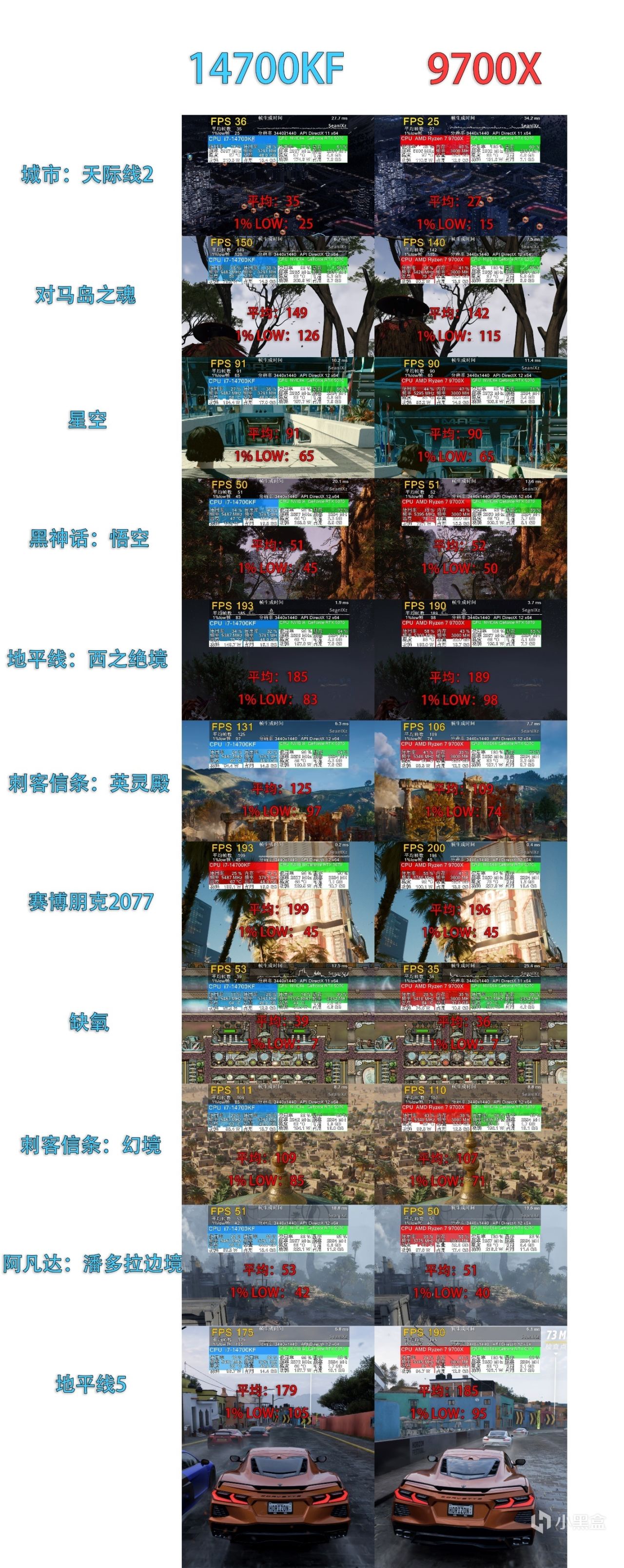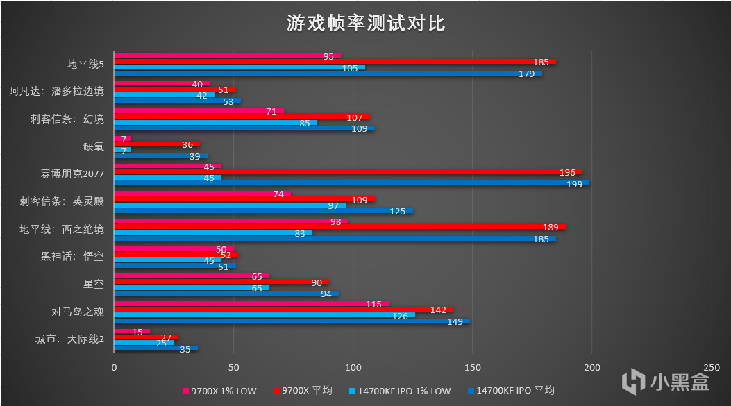 黑猴和地平線西之絕境 9700X表現更好,其它遊戲差別不大,整體來看14700KF IPO有細微的優勢。